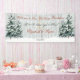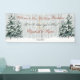 Belle bannière de mariage hivernal "Bienvenue à notre réception de mariage" avec des pins aquarelles, des bouleaux blancs, de la neige et des étoiles scintillantes. Personnalisez avec votre message et vos noms. Idéal pour les fêtes de Noël ou les Sweet Sixteen sur le thème de l'Hiver Enchanté.