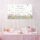 Bienvenue à vos invités mariages dans le style avec cette bannière d'accueil fleurie moderne et estivale. Il présente un design botanique élégant et lumineux de fleurs sauvages colorés d'aquarelle avec des papillons, des bourdons et des coccinelles. Customisez le texte et le placement graphique au besoin.