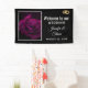 Bienvenue sur notre bannière mariage avec une image rapprochée d'un rose gothique violet magenta. Un style sombre et mystérieux. Une paire de mariages d'or sonne dans le coin. Personnalisez avec votre propre texte.