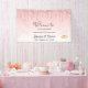 Une bannière mariage simple et moderne. L'arrière - plan a une image de parties scintillant rose étincelante gouttes au sommet. Le reste de l'arrière - plan est un délicat dégradé de couleur rose pastel. 2 bandes mariages or en face du texte personnalisé. Une ligne de séparation élégante sépare une partie du texte.