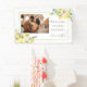 Des fleurs jaune aquarelle délicates décorent cette belle bannière mariage de l'après-midi d'été avec votre photo fiançailles. Le décor de mariage du jardin est accentué par une douce bordure rectangle vert sauge et des feuilles botaniques sous les élégantes pivoines ensoleillées entourant votre photo de couple. Floral et léger, parfait pour une cérémonie en plein air.