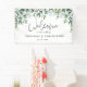 Belle bannière mariage rustique avec des noms personnalisés et date mariage. Elégant feuillage aquarellé de feuillage d'eucalyptus et de branches botaniques et de feuilles dans les tons sauge, vert et bleu poussiéreux. Ajoutez facilement les noms de votre mariée et de votre mariée et le jour de leur mariage. Voir notre collection pour des produits plus magnifiques avec ce design. Bannière Rustique Mariage Eucalyptus.