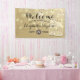 Modèles de bannières de bienvenue mariage - Elégant Mason Jar & Vintage String Lights sur Faux Gold Foil Arrière - plan. Un design parfait pour votre grand jour. Tous les styles de texte, couleurs, tailles peuvent être modifiés selon vos besoins !