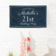 Bannière moderne marine bleu et blanc 21ème anniversaire pour une fête d'anniversaire de femme. Le texte est une police de script de calligraphie élégante. Contactez-nous pour obtenir de l'aide sur la personnalisation ou pour demander des produits correspondants.
