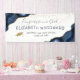 Célébrez son jalon en style avec cette bannière tendance et élégante de graduation, avec des sections d'aquarelle bleu marine découpées avec de la parties scintillant en faux or dans les coins supérieur gauche et inférieur droit. Les mots "Félicitations à notre Grad" (ou le texte de votre choix) apparaissent dans un élégant script d'écriture gris-fusain au-dessus du nom de votre diplômé en bleu marine sans serif police. Ci-dessous, ajoutez le nom de son école et son année de graduation en charcoal sans serif. Les confettis en or Faux flottent sur le bord supérieur, et un casquette en parties scintillant d'or faux mortier apparaît en bas à gauche.