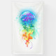 Grande méduse irisée, artistiquement dessinée, brillante, avec de longues tentacules sur le blanc, peinte sur l'arrière - plan multicolore. Méduse arc-en-ciel.