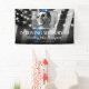 Banderole funéraire de la police avec le drapeau américain, la fine ligne bleue représentant les forces de l'ordre, des lampes à cordes, une photo de votre être cher perdu, et un modèle de texte facile à personnaliser.