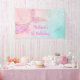 Cette adorable bannière présente une queue de sirène colorée avec des ornements de parties scintillant en faux or.