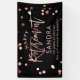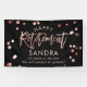 Modern Happy Retirement Nom personnalisé Bannière avec un rose imprimé festif en or confetti Illustrations. Personnalisez avec votre nom et 1 ou 2 autres lignes de texte personnalisé ainsi que l'option de changer l'arrière - plan en une autre couleur dans l'outil de conception sous "customiser plus loin". Voici l'or rose en version noire.