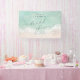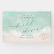 Beau turquoise abstraite aquarelle scintillante vague d'océan et les coeurs dans l'arrière - plan de plage de sable, surmonté d'un script élégant et d'élégante police serif, moderne et simple. Banderole de bienvenue pour la douche de mariage nautique de plage, mariage de destination tropicale, douche nuptiale sur le thème de l'océan côtier en été.