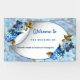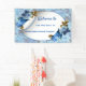 Couleurs d'aquarelle bleu Hydrangeas & bronze feuille thème mariage, certains avec des parures de cadre géométrique or pour personnaliser la bannière mariage d'accueil