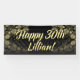 Le joli or beau et la bannière personnalisée de fête noire de fête d'anniversaire murent la décoration. Coutume exceptionnelle de bannière d'anniversaire imprimée avec les hommes ou les femmes d'invite de honneur nommés ! La poussière de noir et d'or, bokeh et rayons de la lumière féeriques pour célébrer l'anniversaire spécial d'étape importante d'invite de honneur !