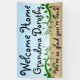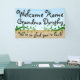 Bienvenue chez vous à un ami ou un membre de la famille tant attendu, avec ce panneau personnalisé, avec un arrière - plan bleu et bronzé, des vignes à curling et une police de caractères fantaisie.