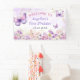Papillon floral pourpre et or 1ère bannière d'anniversaire