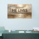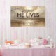 Une bannière moderne contemporaine pour partager votre temps de service avec la communauté. Un lever de soleil doré est l'arrière - plan de la déclaration audacieuse "Parce qu'il vit". Customisez en ajoutant votre nom d'église, votre heure de service et toute autre information. Utilisez pour une promotion de service du dimanche de Pâques ou simplement pour changer votre signalisation. Les bannières sont un excellent outil pour communiquer avec la communauté.