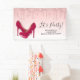 Un design moderne et tendance sur une bannière, pour une soirée bachelorette.. L'arrière - plan a une image de gouttes de parties scintillant rose étincelante, le long du sommet. Le reste de l'arrière - plan est un délicat dégradé de couleur rose pastel. Une paire de stilettos roses à talon élevé ajoute une ambiance design et à la mode.