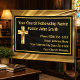Une touche classe d'or et de noir Votre Église Fellowship Nom bannières pour Pasteur, Prêtre, diacre, et autres clercs. Il est conçu avec un élégant motif en métal doré et une bordure noire moderne. #Christian #Catholic