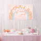 Calme inspiré par Retro avec un signe de 10ème anniversaire à 10 chiffres avec un arc-en-ciel pastel hippie, et marguerites