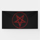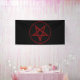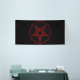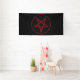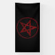 Pentagramme rouge, inversé, texturé en cercle, sur arrière - plan noir. Symbole occulte 666