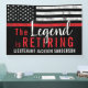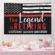 Cette conception comprend un drapeau de pompiers avec des rayures noires et blanches, ainsi qu'une fine bande rouge. Le texte "La légende prend sa retraite" se trouve au-dessus du nom du pompier, lieutenant ou chef qui prend sa retraite. Fêtez dans le style !