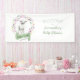 Bannière de bienvenue sur le petit baby shower d'agneau, avec "Un petit agneau est en route" et votre texte personnalisé. Le design comprend un mignon agneau blanc printanier et une couronne colorée de fleurs d'art populaire doodle avec une bannière verte et typographie. Un design adorable et girly, parfait pour les baby showers d'été, de Pâques et de printemps.
