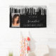 Une bannière pour une fête d'anniversaire de 21ème anniversaire, jeune fille et glamour (ou tout âge). Un arrière - plan noir chic avec des gouttes de parties scintillant en faux argent tendance, la peinture goutte à goutte. Personnalisez et ajoutez votre propre photo verticale de la fille d'anniversaire. Le nom est écrit dans un script de style moderne écrit à la main. Lettres blanches.