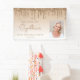 Bienvenue aux invités avec cette bannière photo chic et glamour de la fête du soixantième anniversaire, avec une bordure brillante or fausse parties scintillant goutte à goutte et or ombre arrière - plan. Remplacez facilement l'exemple d'image par une photo de l'invité d'honneur. Personnalisez-le avec son nom en écriture brun clair, avec l'anniversaire et la date ci-dessous en police sans serif brun clair.