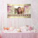 Simple, élégant, soigné, papillons dorés en combinaison avec la photo personnalisée de la fille et parties scintillant arrière - plan or rose. Bannière de la Quinceanera 15e anniversaire élégante, moderne, adorable.