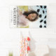 Fêtez le grand jour de votre diplômé avec notre bannière de fête moderne! Doté d'une photo en couleur de la grade, d'élégants motifs de casquette en mortier noir, et d'un modèle de texte de félicitations personnalisé. Rendez cette étape d'autant plus spéciale et mémorable avec une bannière qui symbolise leur incroyable réussite.