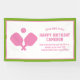 Une bannière super amusante pour votre prochaine soirée de pickleball. Le design comprend 2 pagaies croisées roses et une balle. Ajoutez facilement tous les détails de votre fête personnalisée et changez aussi les couleurs ! Idéal pour une fête d'anniversaire de pickleball pour adultes ou enfants, club de pickleball social ou d'événement, tournoi, ou divertissement quotidien. Pickleball - le meilleur sport de tous les temps ! !