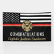 Cette conception comprend un drapeau de pompier avec des rayures noires et blanches, ainsi qu'une fine bande rouge. "Félicitations" et l'insigne d'un pompier se trouve au-dessus du nom du pompier, lieutenant ou chef qui est diplômé ou qui prend sa retraite. Fêtez dans le style !