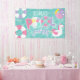 pool party girl unicorn bannière de fête d'anniversaire en rose, violet et turquoise.