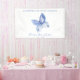 Créez une bannière funéraire commémorative personnalisée avec un simple papillon bleu aquarelle et les mots Forever in our Hearts.
