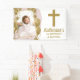 Cette jolie bannière de premier anniversaire et de baptême sera idéale pour la fête de votre petite fille. Ce design comprend une photo de votre enfant sur un arrière - plan d'aquarelle rose avec des ballons d'or. De l'autre côté se trouve le texte doré avec une croix d'or et le nom de votre enfant. Photographie © Storytree Studios, Stanford, CA