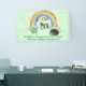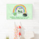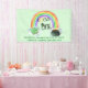 Bannière de fête d'anniversaire avec thème Lucky One. Le design est composé de lettrages et d'illustrations aquarelles. Le poème dit "rainbos, shamrocks, pots d'or, [votre nom] à l'âge d'un an" et le modèle est prêt pour vous à personnaliser. Le Lucky One est décoré avec un fer à cheval et un casquette irlandais et encadré d'un arc-en-ciel coloré. Il y a aussi un shamrock chanceux et une marmite d'or à chaque extrémité de l'arc-en-ciel. Vous pouvez modifier la couleur verte menthe de l'arrière - plan - cliquez sur "personnaliser" pour entrer dans l'outil de conception ou nous envoyer un message d'aide. Consultez notre magasin pour coordonner les invitations et les fournitures de fête.