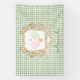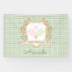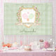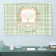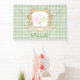 Mettez la scène avec cette belle bannière personnalisée de fête d'anniversaire de pickleball. Cette conception a une aquarelle image d'une crête entourée de branches avec des pagaies vertes et roses en vichy pickleball au centre. Il y a une bordure verte en vichy dans l'arrière - plan. Le texte dit "Joyeux anniversaire." Les couleurs utilisées comprennent le vert mousse, le rose roux et le bronzage. Vous pouvez personnaliser avec un nom.