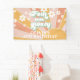 Bannière de fête de 4e anniversaire rétro Sunshine Four Ever Super avec marguerites.
