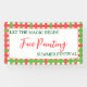 Que la magie commence ! Des enfants Invitations pour se transformer en papillons, tigres, super-héros, ou tout ce qu'ils peuvent imaginer avec cette bannière amusante et festive de peinture faciale - l'ajout parfait à votre zone pour enfants lors d'un Festival d'été! Conçu avec de grandes lettres ludiques, une bordure de pique-nique rouge et blanc nostalgique, et une palette de couleurs saisonnières brillantes de Watermelon Red, Grass Green, and crisp White, cette bannière ajoute instantanément du charme et de l'énergie à votre événement. Avec un espace suffisant pour customiser du texte ou des logos de parrainage, cette bannière est idéale pour mettre en valeur votre station de peinture faciale lors des festivals de camions de nourriture, des foires communautaires, des événements scolaires et des célébrations d'été. Construit pour un usage extérieur et sûr de susciter des sourires, ce panneau ouvre la voie à des transformations magiques. Créez un monde d'imagination et de plaisir - customisez votre bannière de peinture faciale aujourd'hui et laissez la magie commencer!