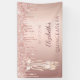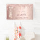 Une bannière de bienvenue pour une Quinceañera girly et glamour, 15e anniversaire fête. Un arrière - plan à l'apparence métallique d'or faux rose avec un élégant or faux rose, gouttes de parties scintillant rose, look dérapant de peinture et une paire de chaussures de ballerine. Personnalisez et ajoutez un nom. Le nom est écrit en or rose foncé avec un script de style moderne écrit à la main.