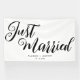 La bannière moderne de réception de mariage juste marié est une bannière de fête de mariage en noir et blanc pour votre mariage. Cette élégante conception "Just Married" fait un ajout amusant à la voiture de escapade du couple. Un équipement de mariage parfait pour la décoration mariage avec tulipes à fleurs et verres à champagne. Customisez avec le nom de la mariée et du marié et la date du mariage de la fête de mariage.