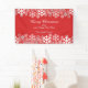 Bannière rouge de Noël avec un motif de flocons de neige et salutations de Noël.
