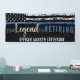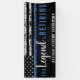 Ce design présente un drapeau de force de police avec des bandes noires et blanches, ainsi qu'une fine bande bleue. Le texte "La légende prend sa retraite" est situé au-dessus du nom personnalisable de l'agent, shérif, capitaine ou chef des forces de l'ordre qui part à la retraite. Célébrez cet événement marquant avec style !
