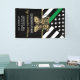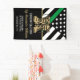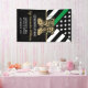 Cette conception comprend un drapeau militaire avec des rayures noires et blanches, ainsi qu'une mince bande verte. Les bottes de l'armée et le texte en or sont au-dessus de tous les détails du parti pour le sergent, le capitaine, le soldat, le lieutenant ou le général qui prend sa retraite.