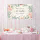 Fête d'anniversaire élégante bannière de bienvenue pour les femmes. Décoré avec de belles fleurs d'aquarelle rose vif et des feuilles verts sauge sur un arrière - plan magique de losange doré glittery. Personnalisée avec le nom de l'invitée d'honneur et sa date de fête. Contactez-moi pour obtenir de l'aide sur la personnalisation ou pour demander l'appariement ou la coordination des produits Zazzle pour votre parti.