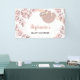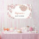 Ajoutez cette belle bannière de Baby shower à votre célébration. Il dispose d'une jolie parties scintillant en or rose bébé paresseux souriant et suspendu à un arbre entouré de feuilles aquarelles dans les tons roses. Vous pouvez customiser la bannière de baby shower de cette petite fille en changeant le nom. Aquarelle originale © Michele Davies.