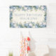 Bannière de la soirée "Happy Birthday" féminine aux couleurs bleu et blanc poussiéreux et élégant. Personnalisé avec le nom de l'invité d'honneur. Contactez-moi pour obtenir de l'aide sur vos personnalisations ou pour demander des produits Zazzle correspondants ou coordonnés supplémentaires pour votre groupe.