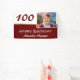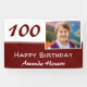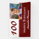 Bannière rouge 100th Birthday Party Photo Backdrop. Cette toile de fond moderne de 100 ans d'anniversaire est en rouge foncé et blanc. Ajoutez votre photo, personnalisez avec votre nom et tout texte sur la bannière.
