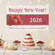 Célébrez la nouvelle année avec cette bannière audacieuse sur le thème de la fraise. Personnalisable avec votre année ou message, c’est un arrière-plan parfait pour les photos de fête aux fruits rouges. Cette conception comprend du texte modifiable parfait pour personnaliser votre célébration.