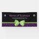 Annoncez vos affaires avec cette boutique pourpre et noire girly de mode d'impression de girafe bannière de 6 pi avec un ruban vert clair mignon attaché dans un arc élégant. Personnalisez cette conception à la mode de poster de animal en ajoutant le nom de votre cabine de magasin de détail ou de bazar. Image imprimée d'appartement, arc non réel.