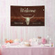 Bienvenue pays western cowboy rodéo crâne taureau signe de la bannière de réception de mariage. Brown style rustique ferme. Décor d'inspiration antique vintage pour les jeunes mariés. Cool, tendance, design animal de ferme moderne. Personnaliser script et date. Copyright de l'image Marg Seregelyi Photography.